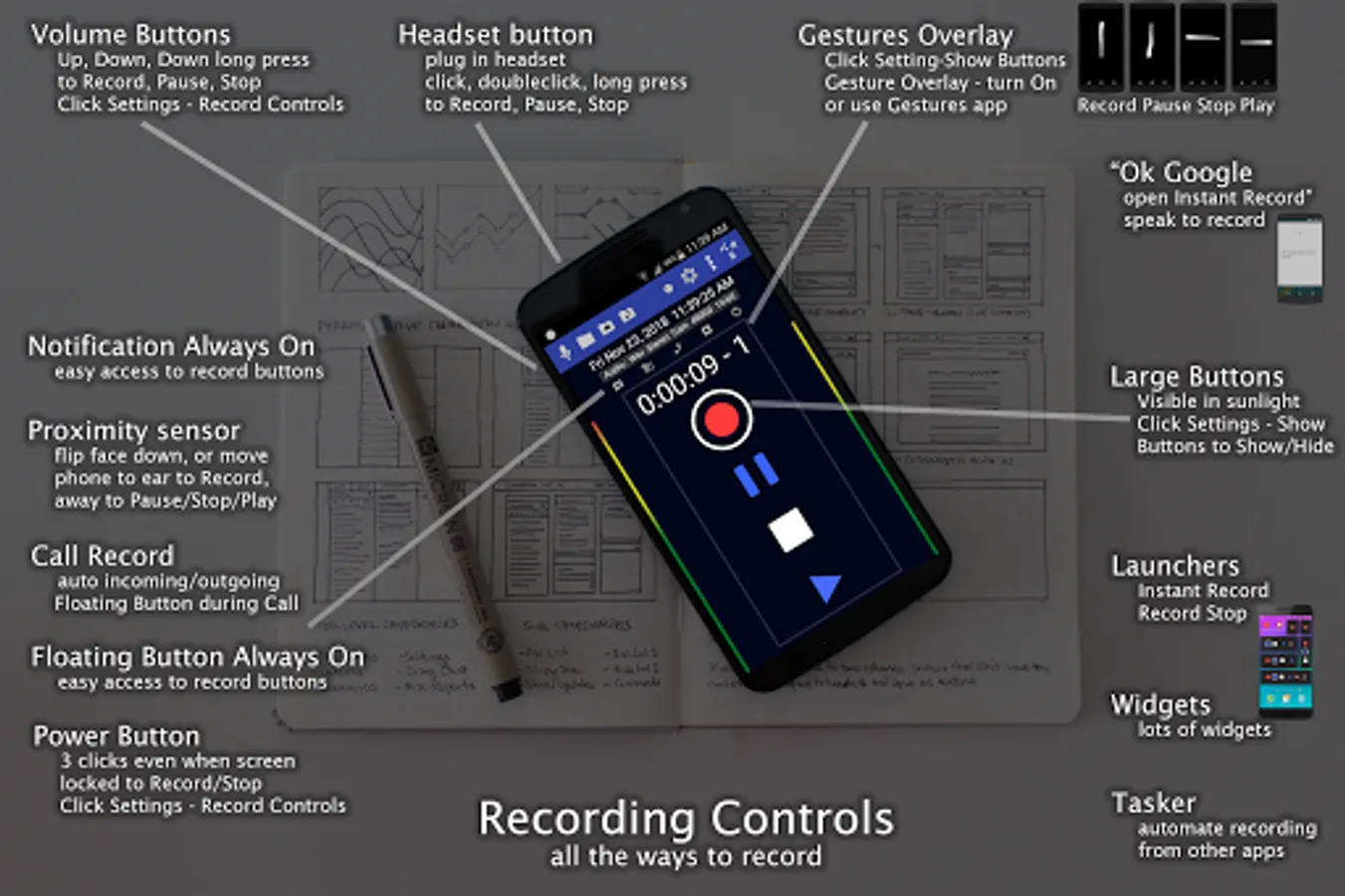 - Power button: 3 clicks (Record/Stop), 4 clicks (Record/Pause/Stop) - choose Settings - Record Controls