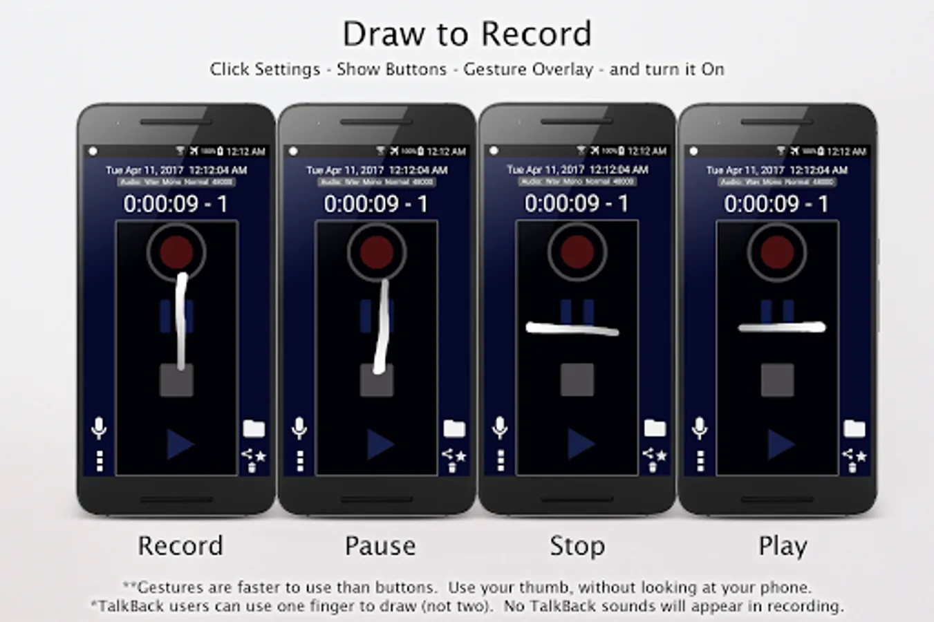 To avoid TalkBack sounds in recording: use Gestures, Ear Detect, Headset