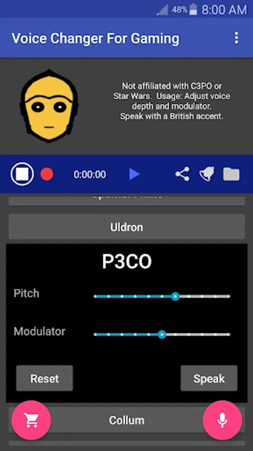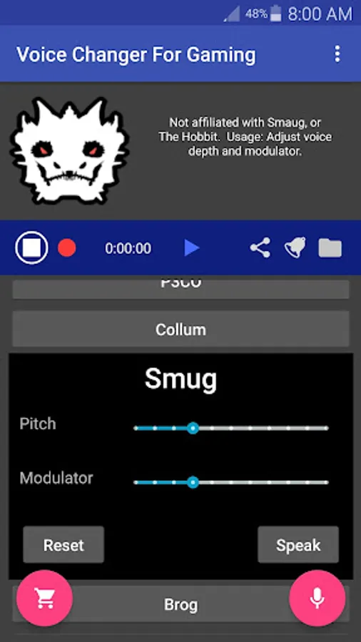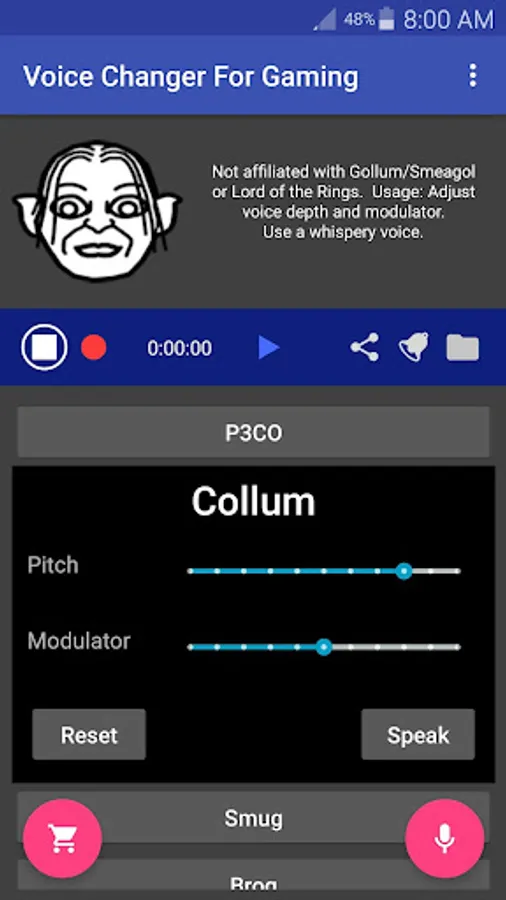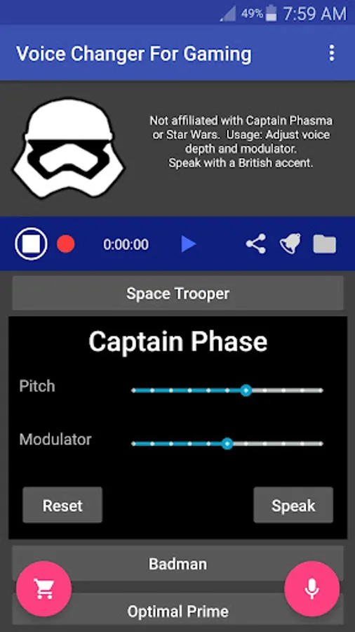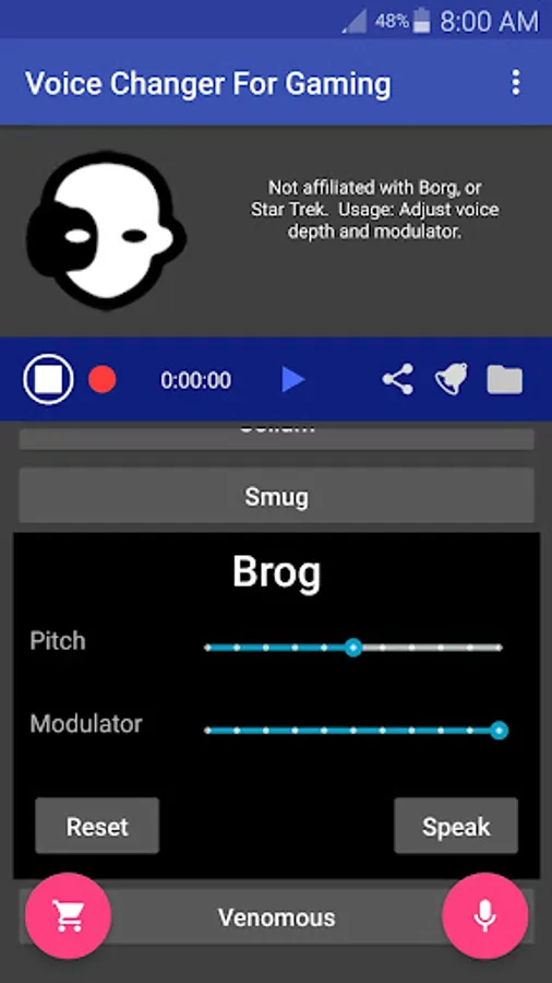 Each voice is individually customizable: You can create entirely new voices by simply adjusting the Pitch and Modulator settings for each voice! For example, you can use the Venomous voice to make a Lion's roar type voice.