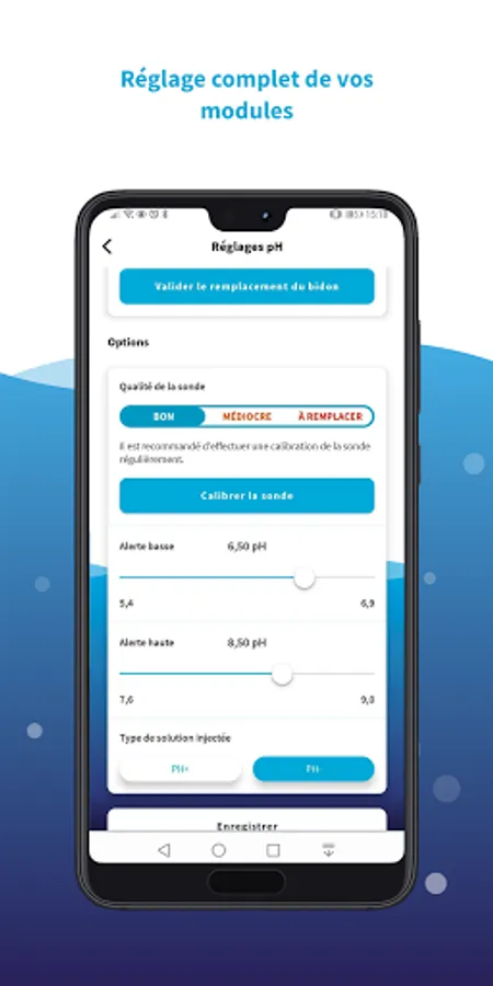 Once the technician has access to the application, they can perform all the normal operations, such as configuring the pool's water treatment settings.