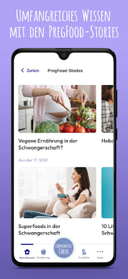 PregFood accompanies you day by day through your pregnancy and provides you with scientifically sound and understandable tips and information. Of course, PregFood also provides a lot of useful information if you want to eat vegetarian or vegan during pregnancy.