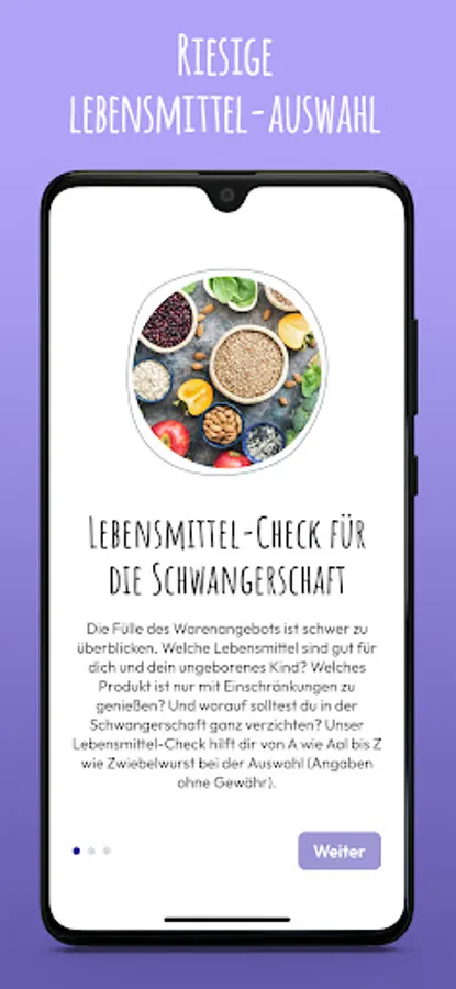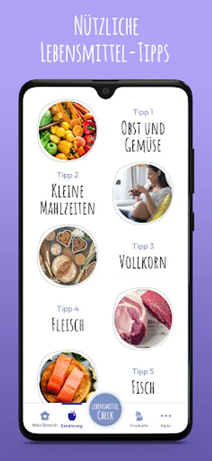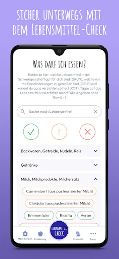 With the comprehensive food check, you can see immediately whether an ingredient or food is suitable for you and your baby. PregFood is the ideal nutrition guide for your grocery shopping during pregnancy. With PregFood, helpful information will make you an expert on the right nutrition during pregnancy and will provide you with valuable tips for healthy nutrition for you and your baby.