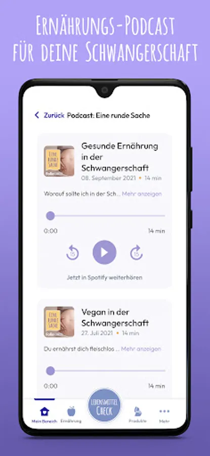 It's all very complicated! But not with this app. With the food check and the nutrition guide, the difficult becomes easy. In addition to proven recipes and an integrated podcast, PregFood provides you with expert, entertaining and exclusive content on optimal nutrition during pregnancy. So that you feel good in every week of pregnancy and your baby can develop healthily.