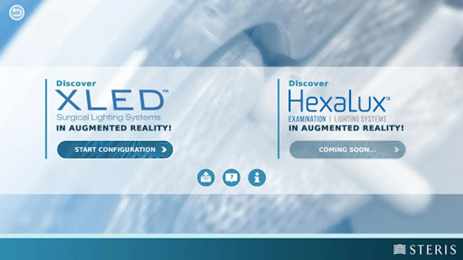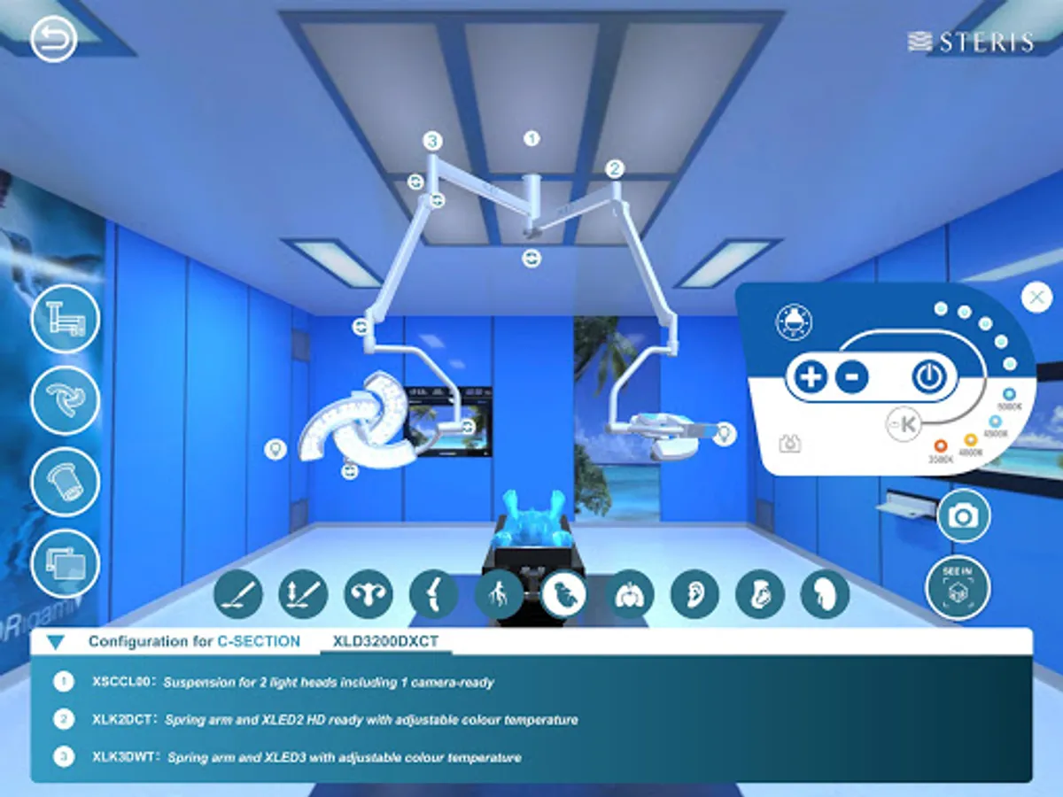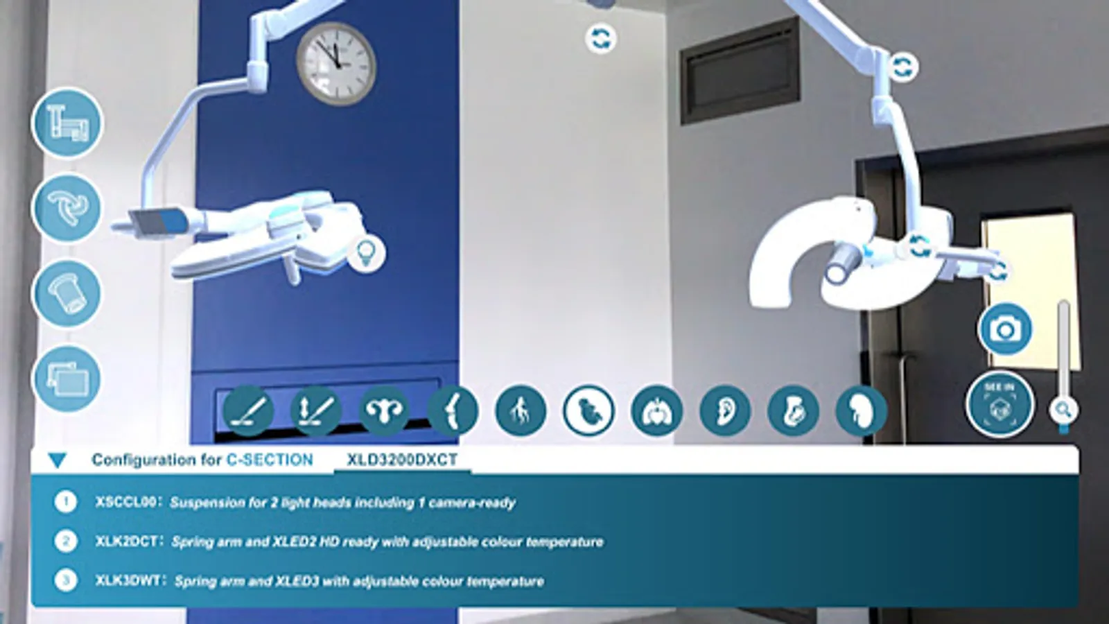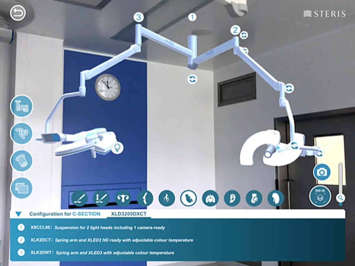 The Augmented Reality feature allows realistic integration in a real environment (operating theatres, trade shows ...) of XLED™ Surgical Lighting Systems and its multiple configurations.