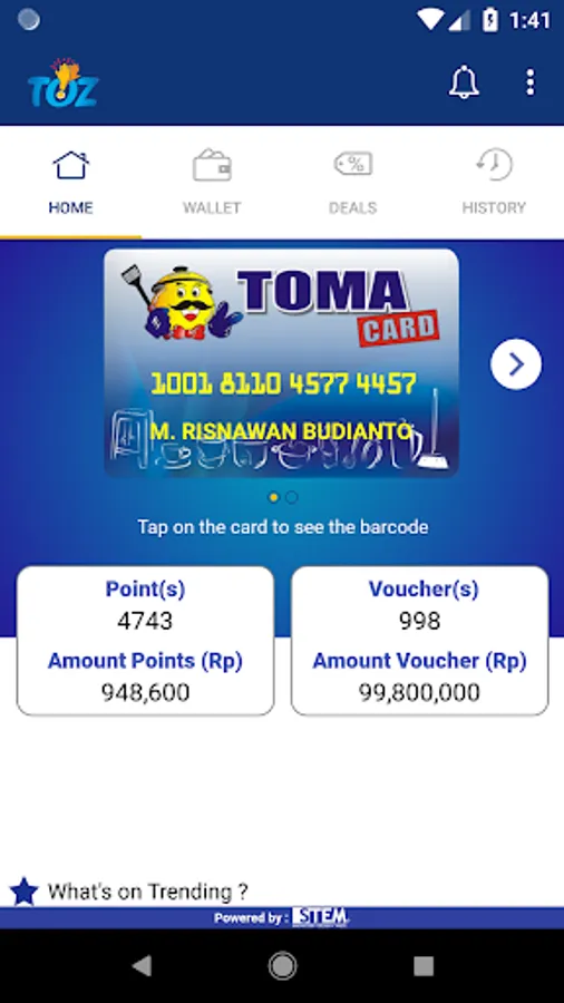 Selamat menggunakan Aplikasi TOZ Member Card - Powered by STEM