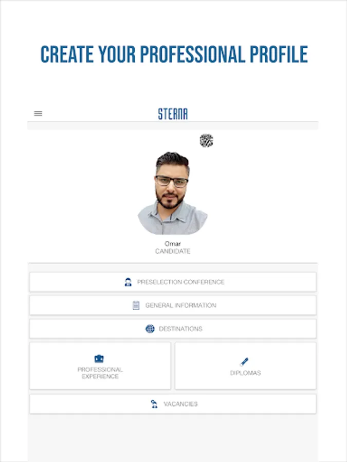 With STERNA you can create your own “Avatar”, meaning a digital profile of yourself including your skill sets. An automated wizard will guide its users during the process until the profile is completed. Exams to validate skills may be required throughout the process. Upon your acceptance, the interviews with the hiring company as well as the exams will take place either virtually or on-site.