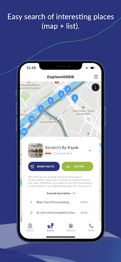 Our application is a collection of over 100 water attractions located in Szczecin, in Międzyodrze, up to the German Schwedt, which can be admired from the deck of a kayak or motorboat.