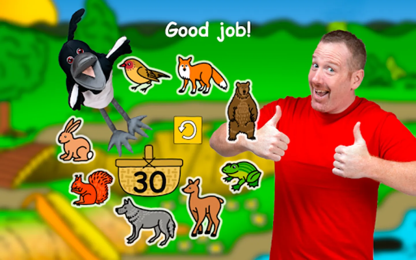 The ‘Steve and Maggie’ YouTube channel is known around the world as a trusted resource for children, and in this app you get to interact directly with Steve as you listen and learn to name some woodland animals while having fun finding your way around the maze. There are fallen logs, stepping stones and slides to navigate on this Steve and Maggie adventure! Your time is limited so you will need to be quick! Will you get the highest score by collecting all the ‘Stevie Stars’ or with just the rewards for finding the animals Steve asks for? Can you get the same score on the medium or difficult setting? Bet you can’t, because the difficult setting has a little surprise installed for you!