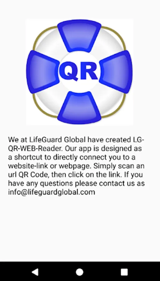 Our app is designed as a shortcut to directly connect you to a website-link or webpage. Simply scan an URL QR Code, then click on the link. If you have any questions please contact us at info@lifeguardglobal.com