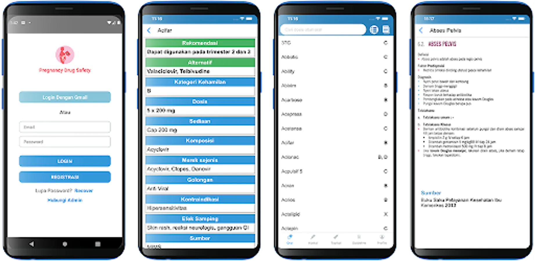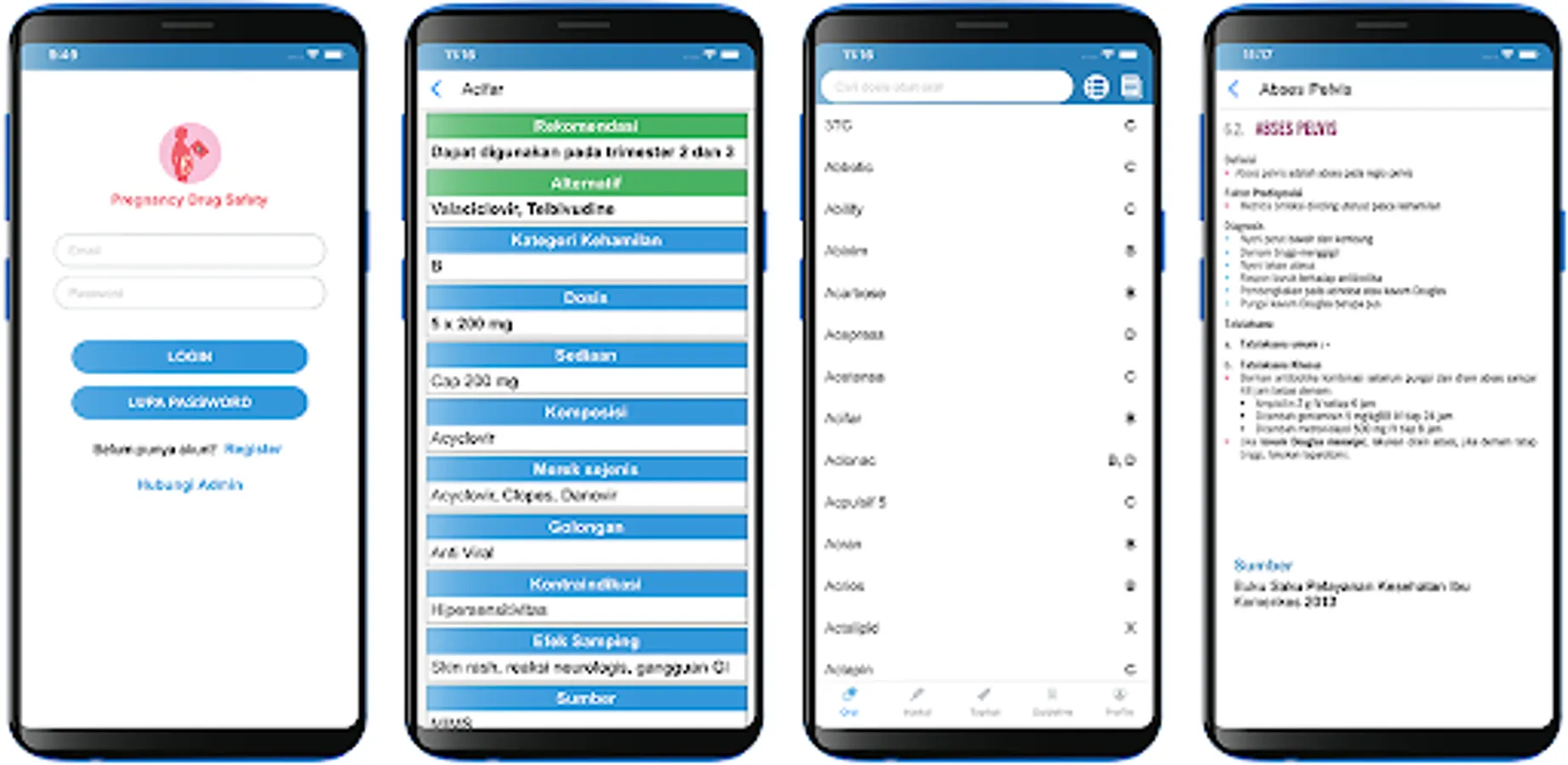 Selection of safe drugs for pregnant women is very important to ensure the safety of babies and mothers. This application was created and compiled by a gynecologist to provide accurate information about drug safety and guidelines for handling pregnant women that are updated regularly.