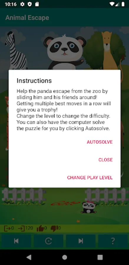 Help the Panda escape from the zoo by sliding around him and his friends. Based on the classic sliding block puzzle Klotski / Huarongdao.
