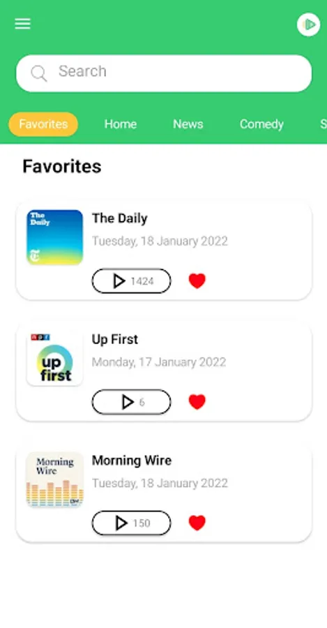 Simply search and favorite podcasts.