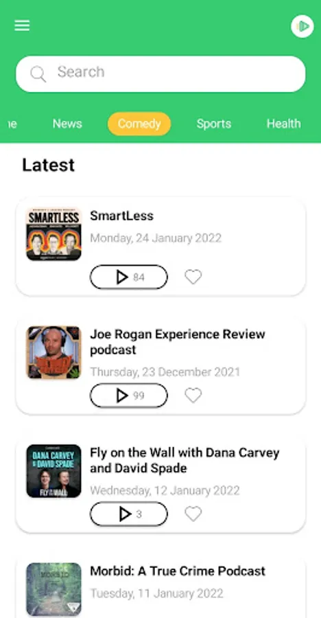 Discover podcasts by categories as well. News podcasts. Comedy podcasts. Crime podcasts. Podcasts for kids and more.