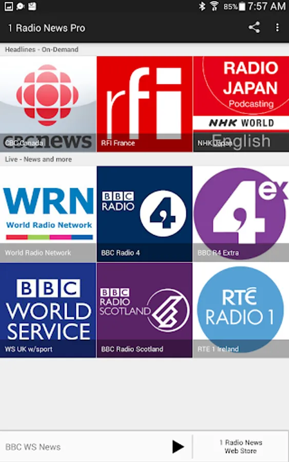 This Pro version has 30x more stations and on-demand shows with no mobile ads compared to our free version: https://play.google.com/store/apps/details?id=com.stevenclift.scradio