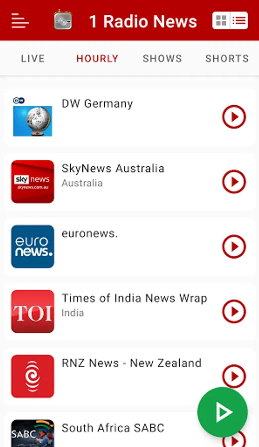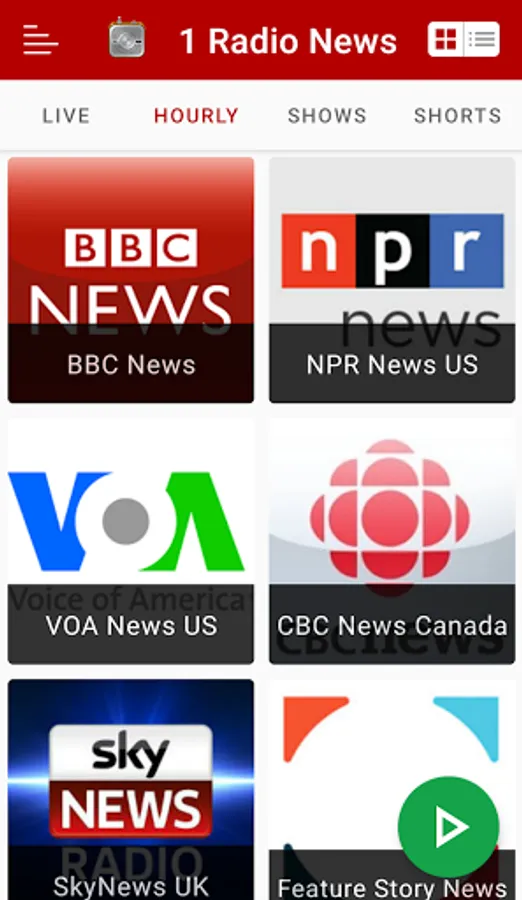 Press one simple green "Play-All" button to listen to hourly radio news.