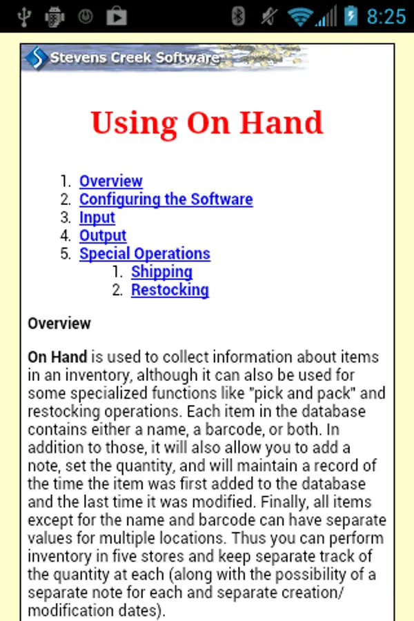 o Read the manual here: http://www.stevenscreek.com/android/manuals/onhand.htm