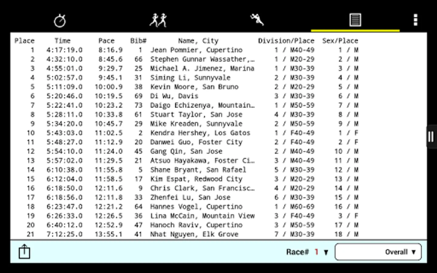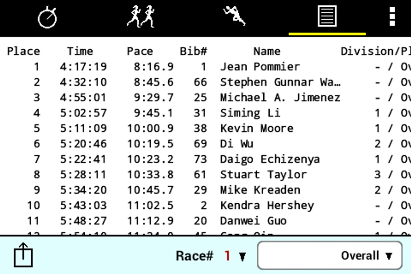 • Uploaded results include complete (overall, sex, division) results