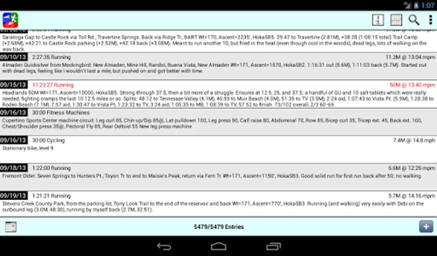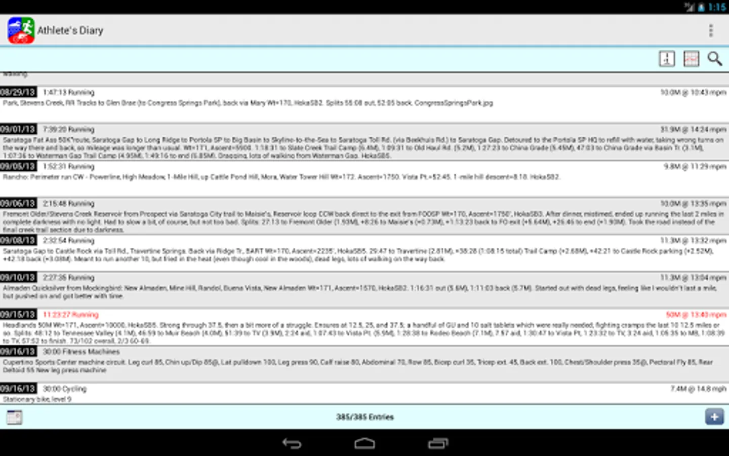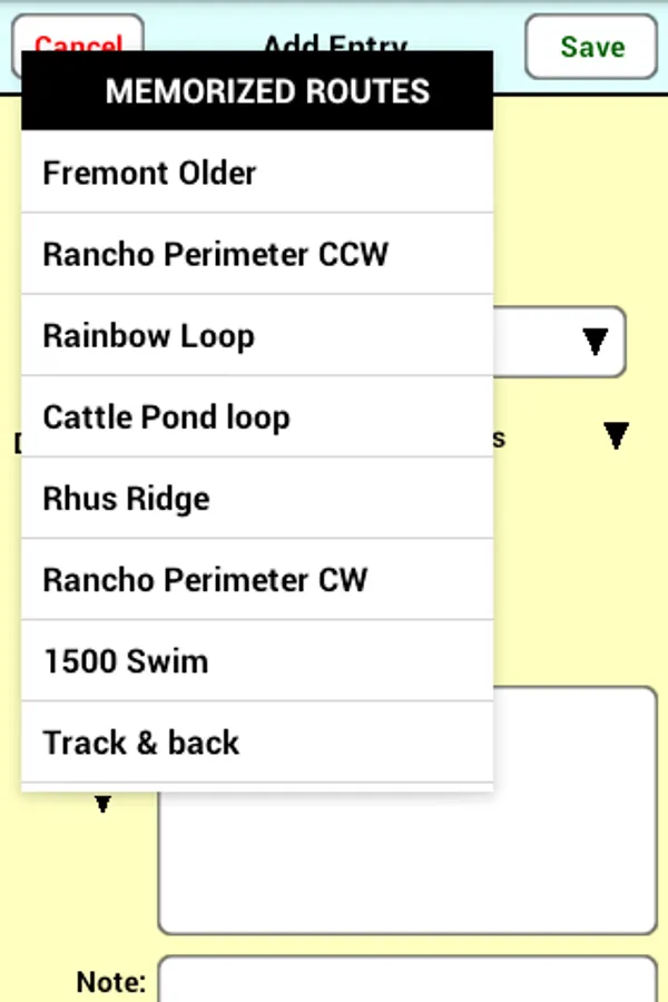o Memorize and enter frequent workouts using "autofill." Just enter today's time and perhaps a comment and you're done.