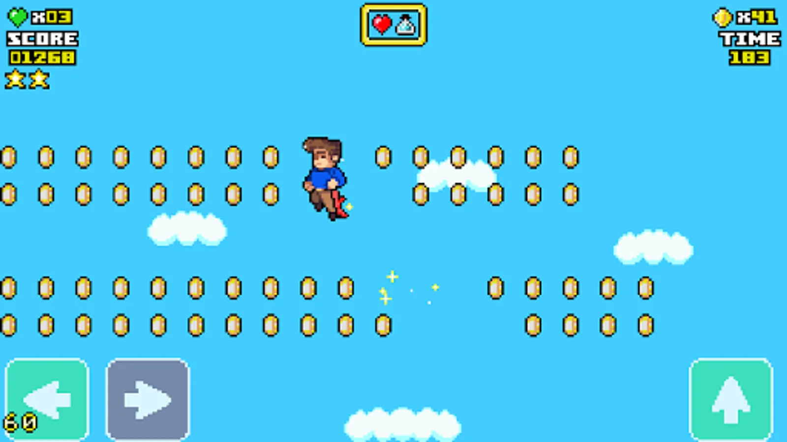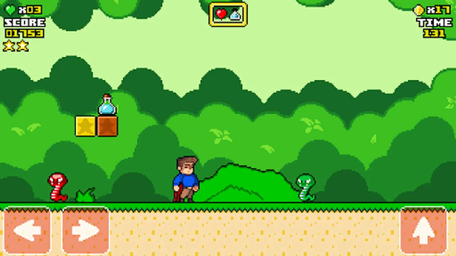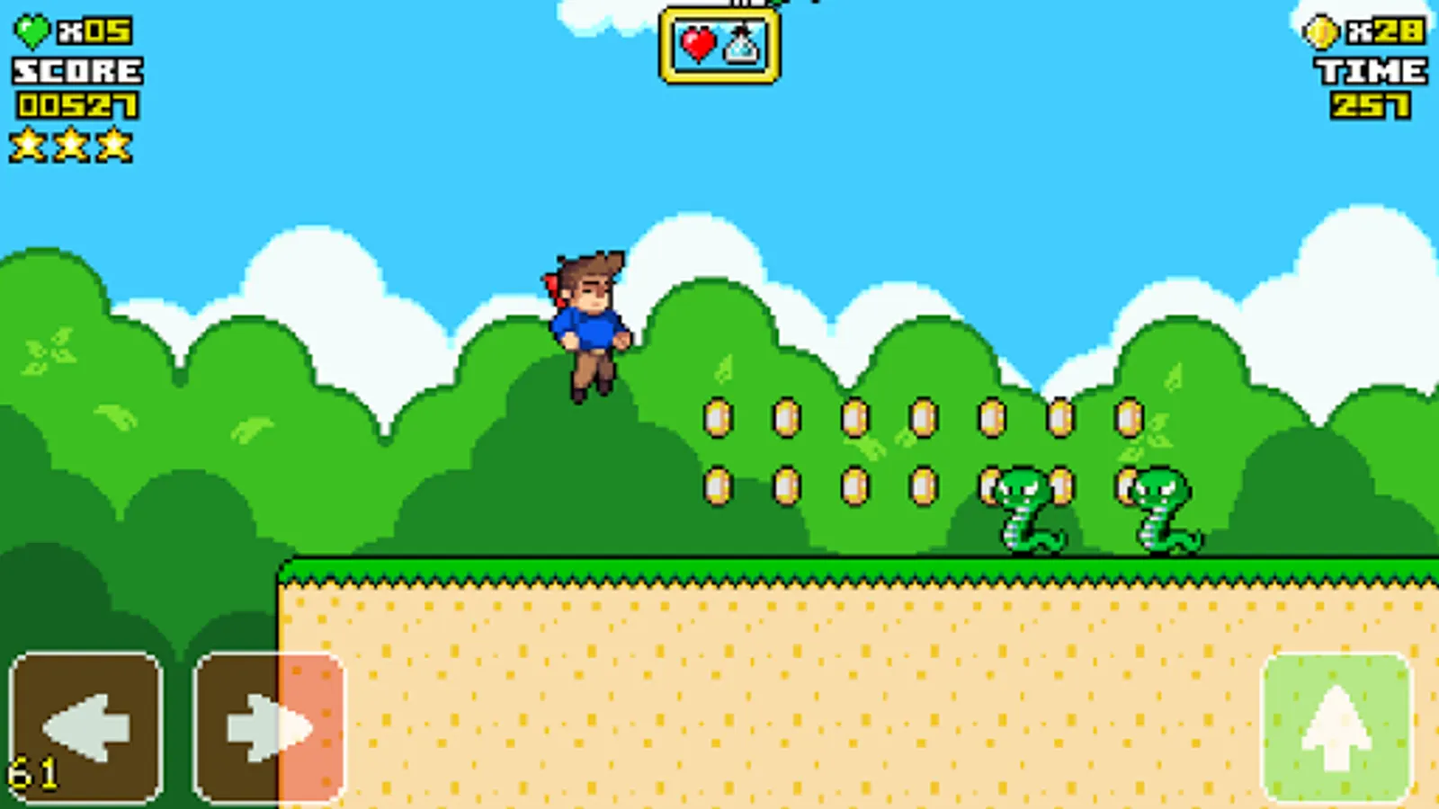 - Fun and addictive platform game with 8-pixel and 16-bit 2D graphics (classic retro style).