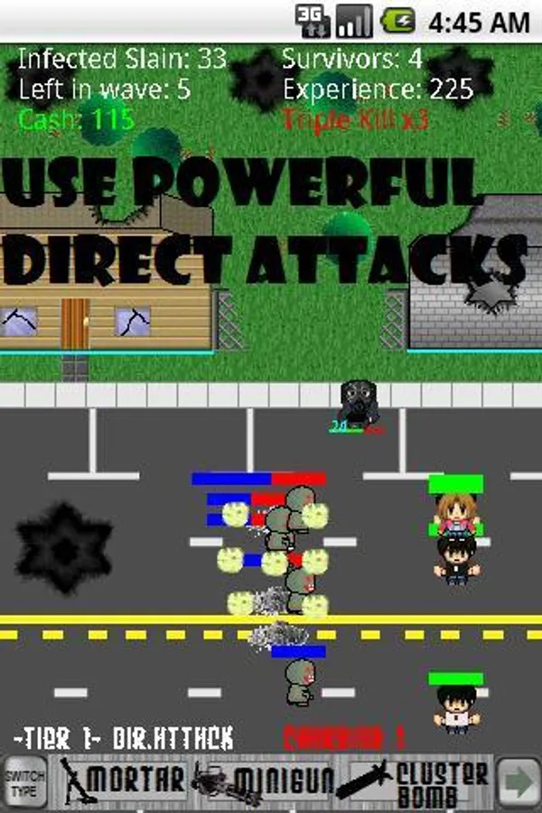 - 4 Direct Attack Weapons including the Zombie Killer Laser, Mortars, Miniguns and Cluster Bombs