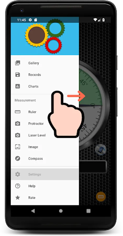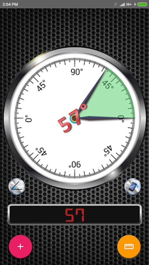 Relative Angle: This mode is useful for measuring angle if object is not parallel to the ground or surface is not even. Touch angle meter bezel to set first portion of the angle, touch again after rotating your device to complete measurement.