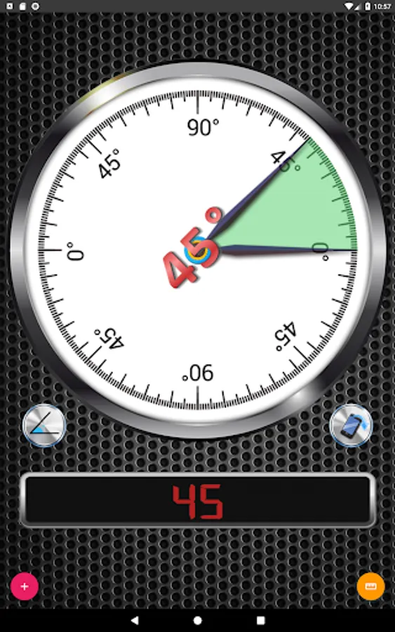 The Angle Meter application is a tool for measuring angle or inclination. It uses arc tangent of gravity between two axes and provide accurate results depending on quality of sensors.