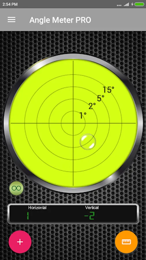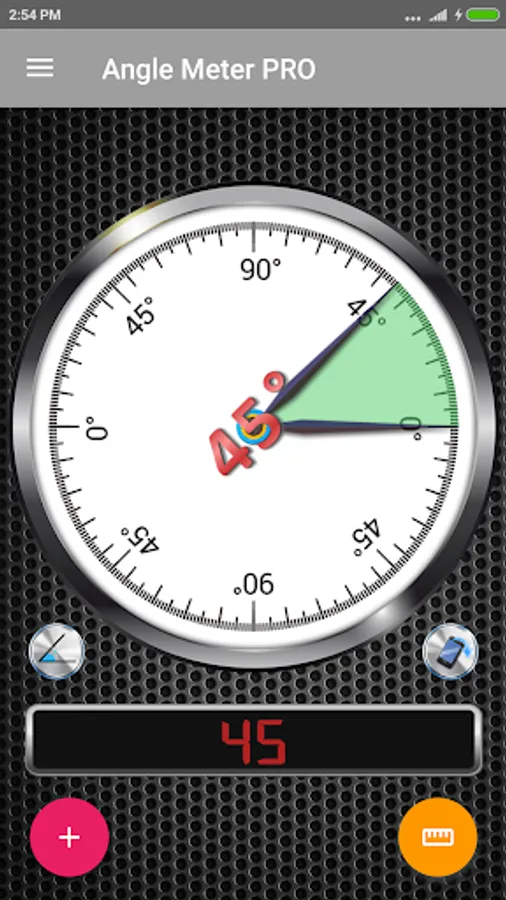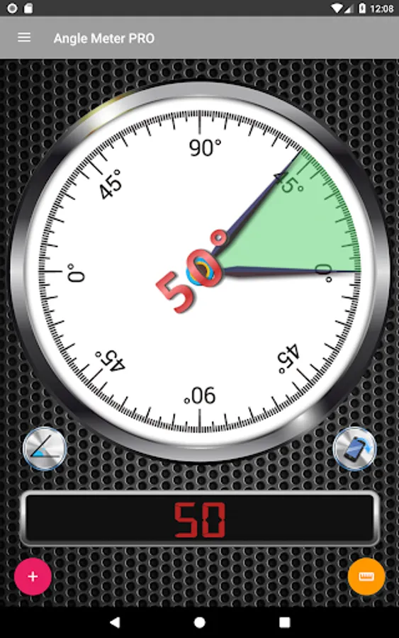 Relative Angle: This mode is useful for measuring angle if object is not parallel to the ground or surface is not even. Touch angle meter bezel to set first portion of the angle, touch again after rotating your device to complete measurement.