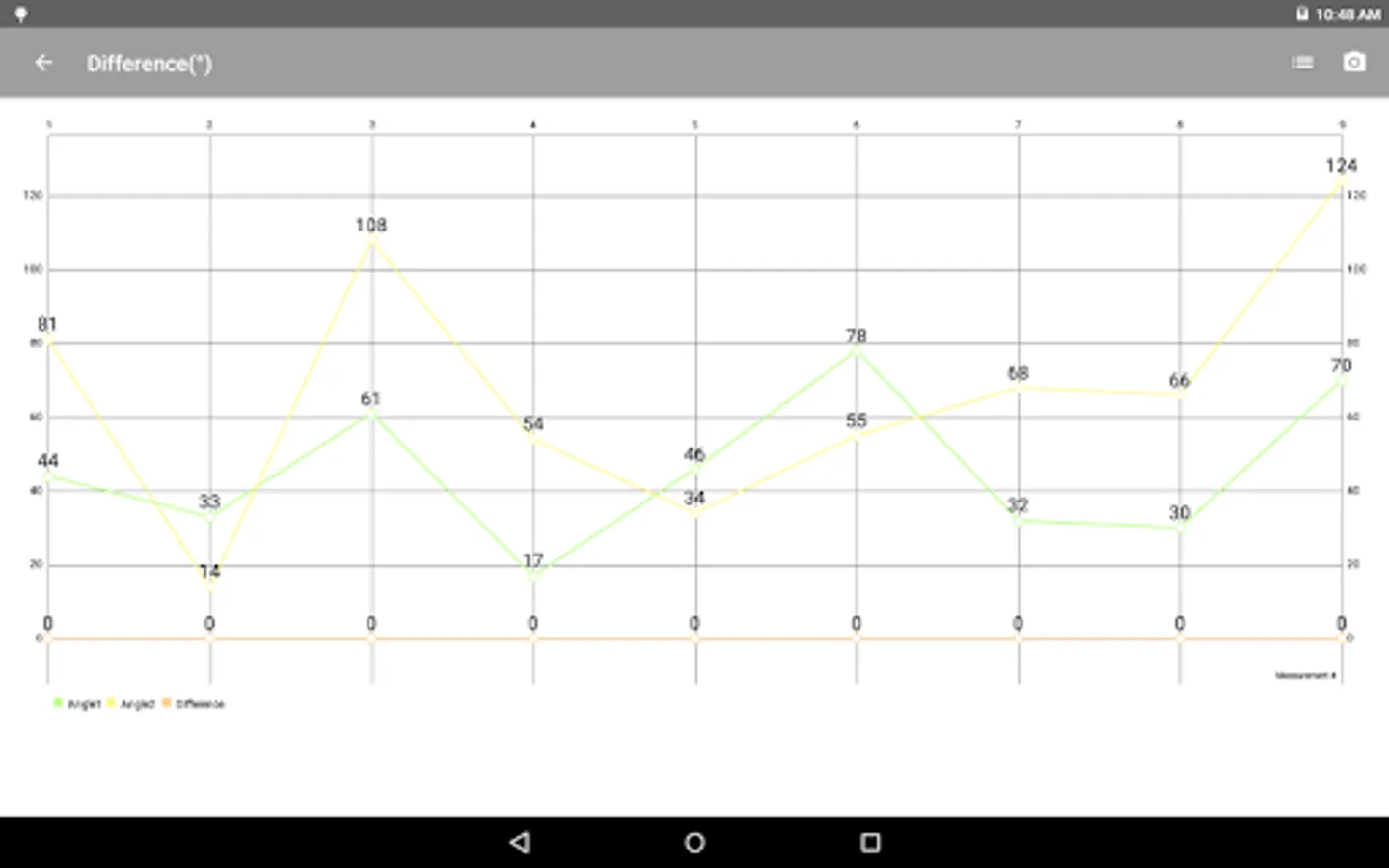 Difference Between Two Angles: This mode is useful for calculating inclination between 2 separate objects. Touch angle meter bezel and fix the first angle. Touch again to fix second and see difference between to angles.