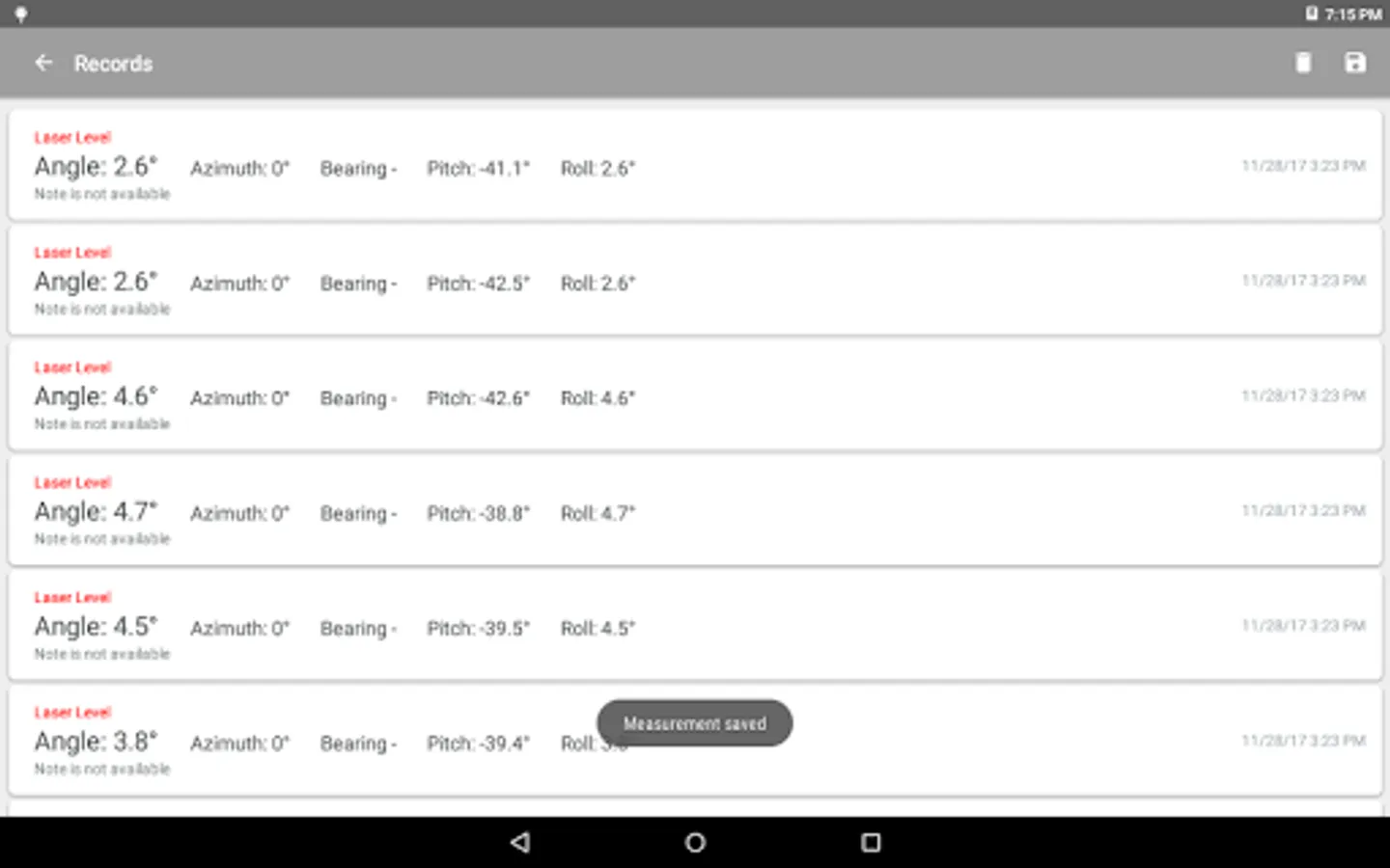 Smart Laser Level app with 3 different modes, functionality to save your records and get xls files or display your recods via charts.