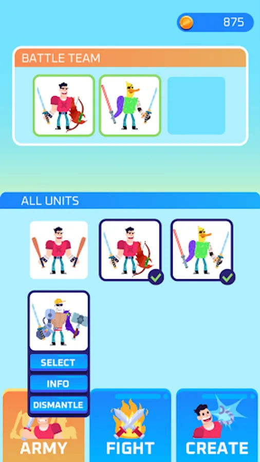Combine body parts and create strong warriors for your team. Fight against creators of enemies in short strategy battles. There will be NFT features in the future, so you will have chance to get rich!