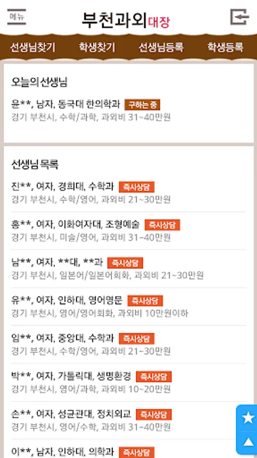 부천 직거래 과외중개사이트입니다
