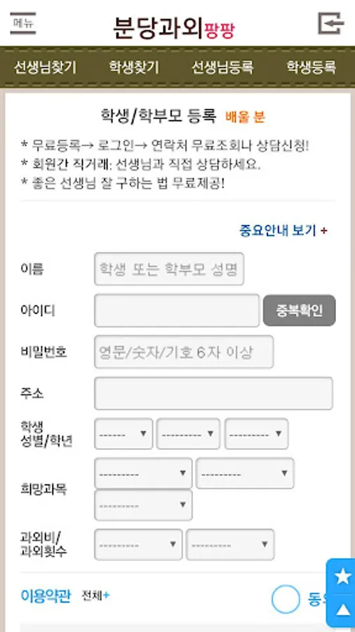 과외선생님 구하는 방법은 과외학생등록하신 후