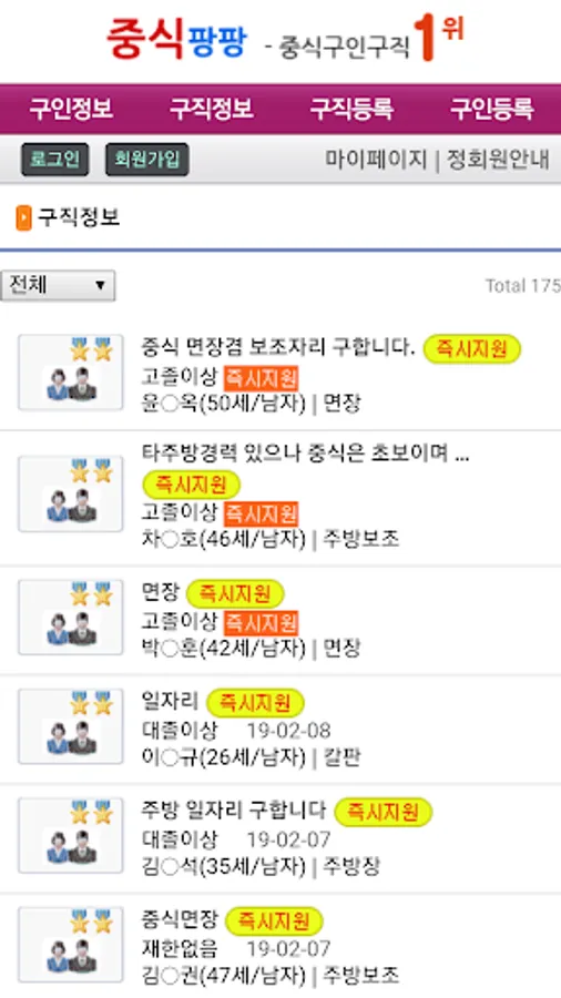 주방장, 칼판장, 면판, 홀서빙, 중화요리배달 어느 직종 구인이나