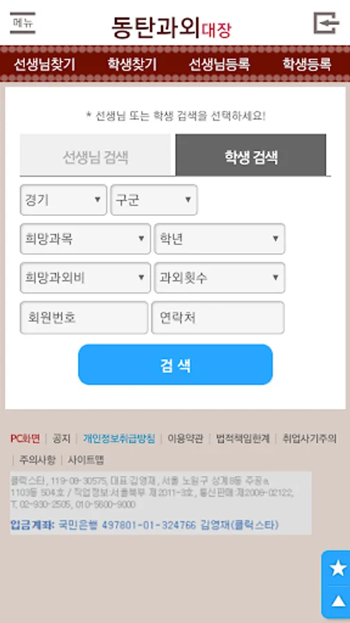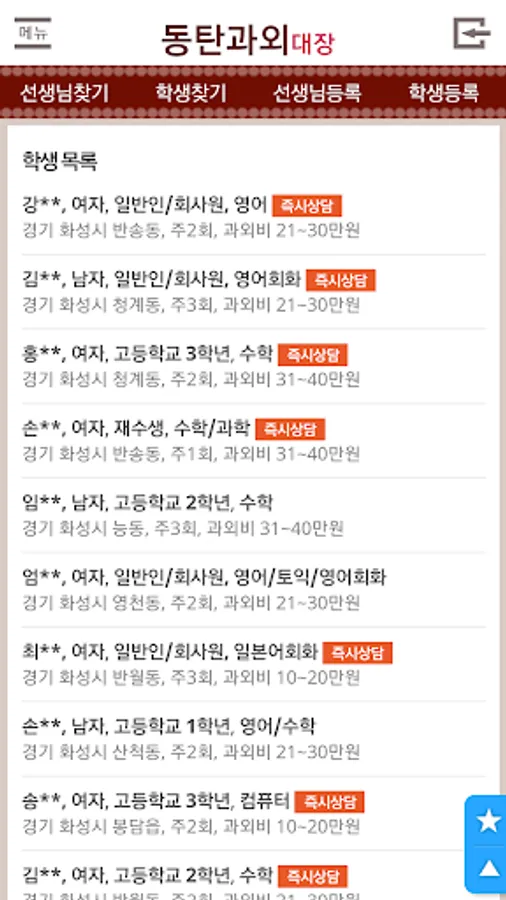 과외선생님이나 학생구하기를 좀 더 편하게 이용가능하십니다