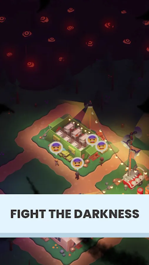 A city-building simulation game occurs in darkness and shadows, where everything is engulfed and obstructed by the ever-encroaching dark. Only light can disperse the shadows and bring hope to the settlement.