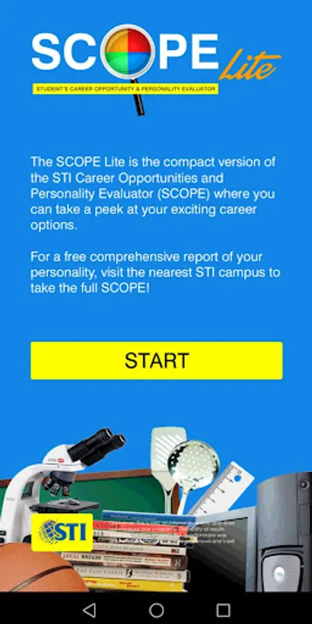 The SCOPE Lite is the compact version of the STI Student Career Opportunities and Personality Evaluator (SCOPE) where you can take a peek at your exciting career options.