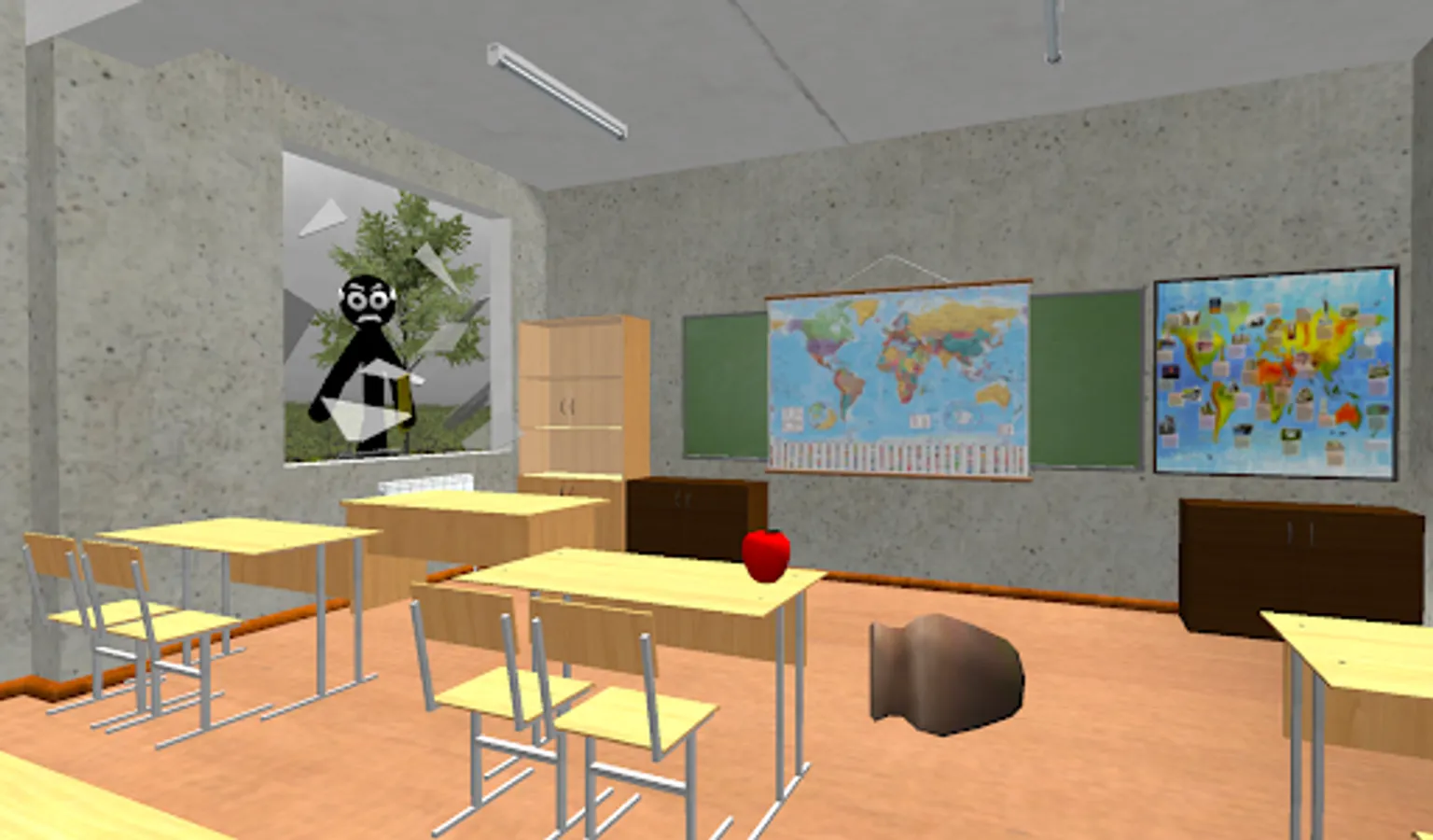 A few weeks later, you noticed that the stickman teacher comes to school on weekends... This alerted you, because the school is closed for the weekend and there is no security in it. You decide to come over the weekend and find out what your neighbor Stickman does. You came to school and when he saw you he chased you! You were able to escape away to your home and tell your parents about it, but they did not believe you. Sneak into the school again and find out what scary secrets your math teacher is keeping!