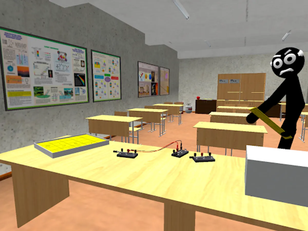 Get ready for an unusual action game about a stickman teacher neighbor in a large school location with beautiful graphics and an interesting plot!