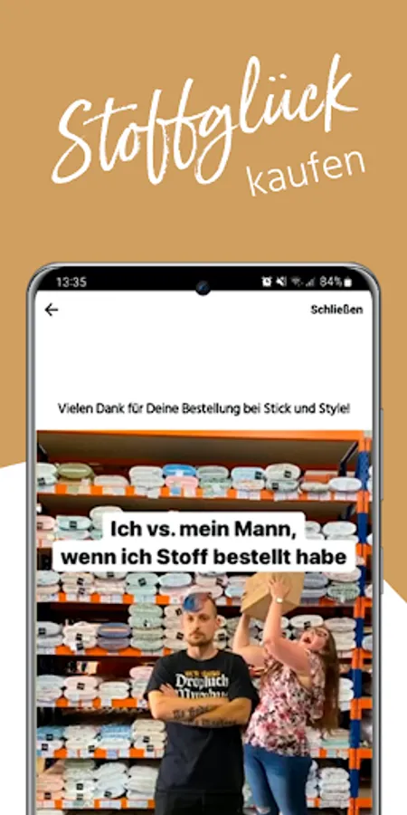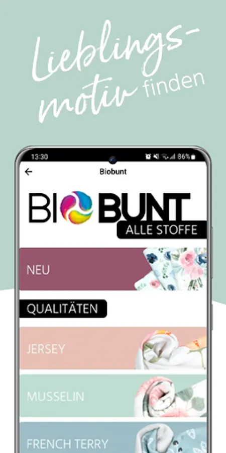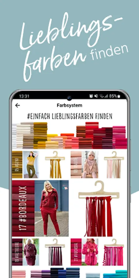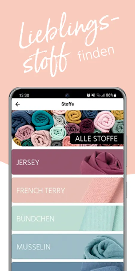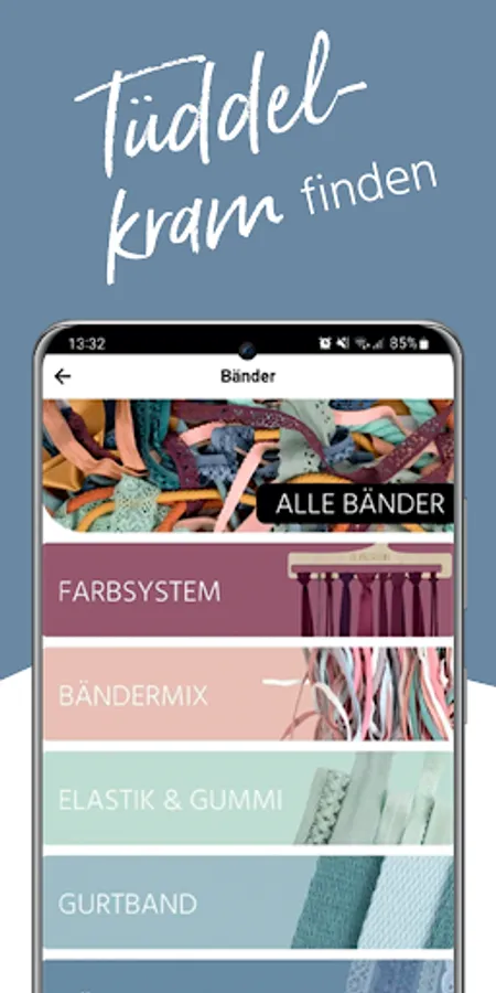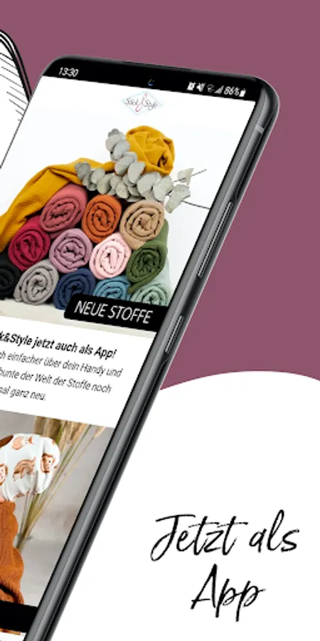 Then you've come to the right place at Stick & Style, because with our exclusive color system you can combine the latest designs on fabric, ribbons and unis within a few seconds, don't miss out on a new in-house production and you get all the promotions very easily directly via push message. Look - click - luck!