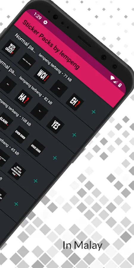 This app includes multiple sticker packs that you can install what you like. It's completely up to you. Use more stickers, less typing.