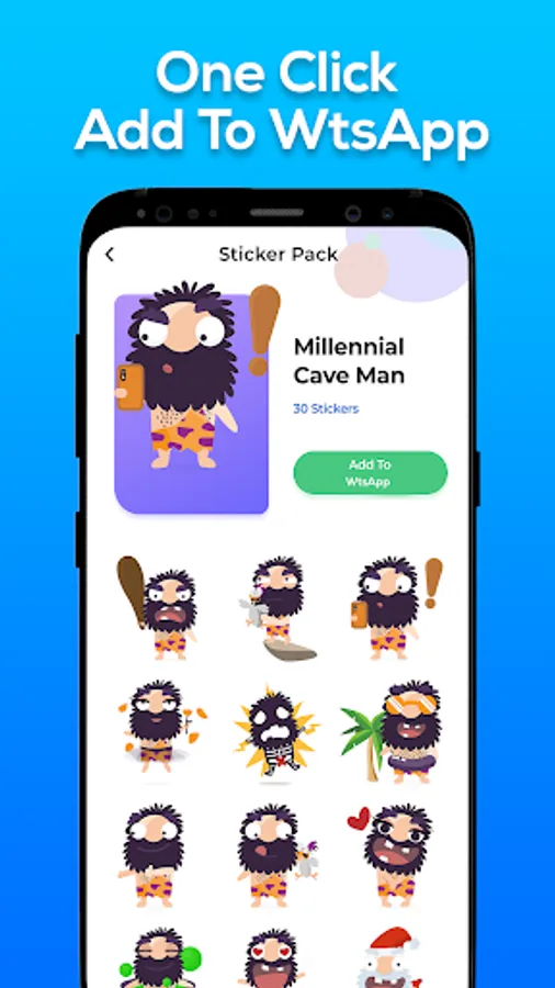 1. Click on the 'what's app sticker'/personal stickers app, you will see the featured stickers at the top and other classified stickers below.