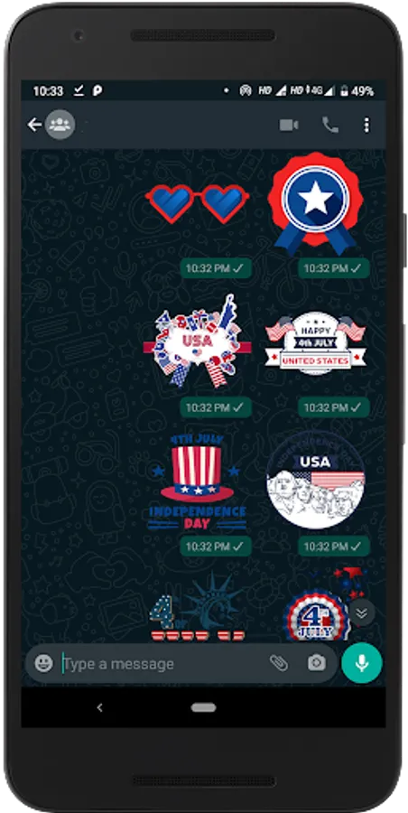 whatsapp sticker for US Independence Day app has many different type of images or phots and quotes so its very attractive.