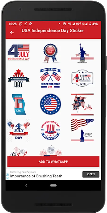USA Independence day app, you can install whatsapp sticker which is 100+ stickers to share your friends and relatives.