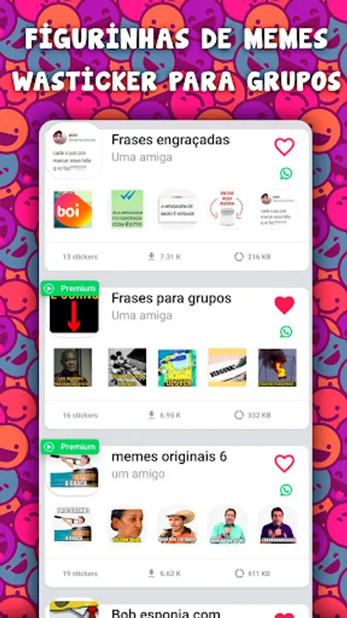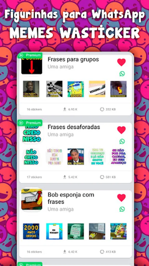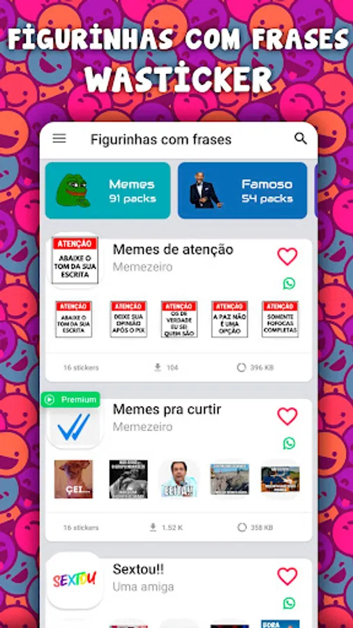 What's more, we have a wide selection of WASticker memes and funny stickers for you to choose from. 🤪🎉 Our collection includes a variety of Brazilian memes, with funny phrases and amusing images that will guarantee a lot of laughs in your WhatsApp conversations. 🤣👏