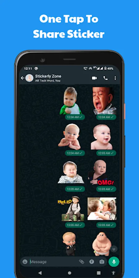 Express yourself with a touch of your favorite stickers and share stickers on WhatsApp.