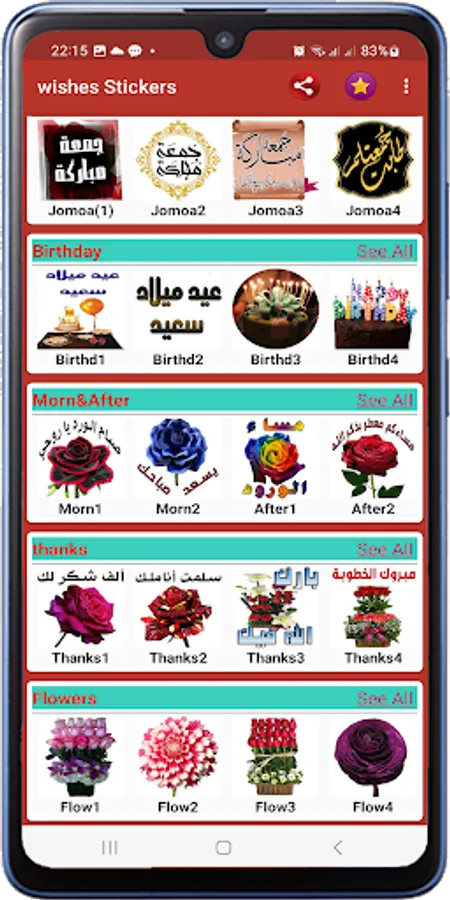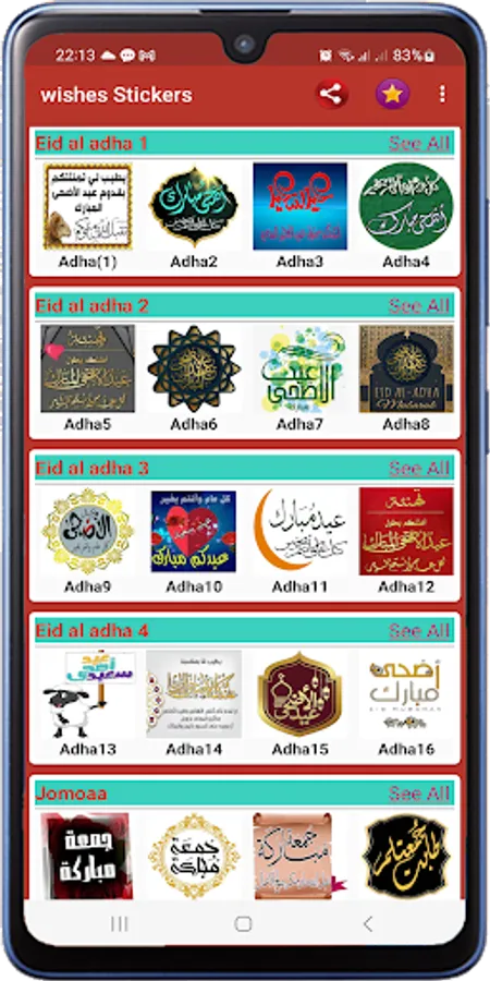 The application of congratulations stickers for all occasions offers you the most beautiful and finest variety of wishes for all occasions such as (Christmas congratulations stickers, Eid al-Adha wishes stickers, Blessed Friday congratulations stickers, Ramadan stickers....)