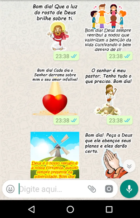 Religious stickers for you to chat on WhatsApp to friends, groups, family, colleagues. Several packages with good morning messages, good night, day to day to spread the word of the Lord.
