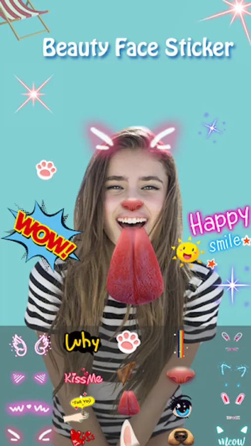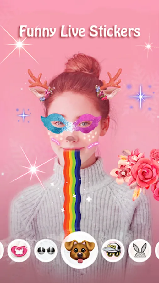 Beauty Plus Camera - Selfie Camera With the live stickers in Sweet Camera, you can add dog ears, wide-brimmed hats, elephant faces, all sorts of masks, etc. Basically, you have all the classic live stickers from Sweet Camera and Ins, and many more. Plus, you'll find them all perfectly organized by categories.