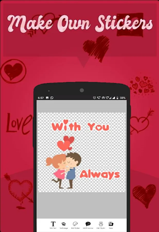 -> Select Image From Pictures -> Erase BG -> Add Your Text -> Save Sticker -> Add To WhatsApp