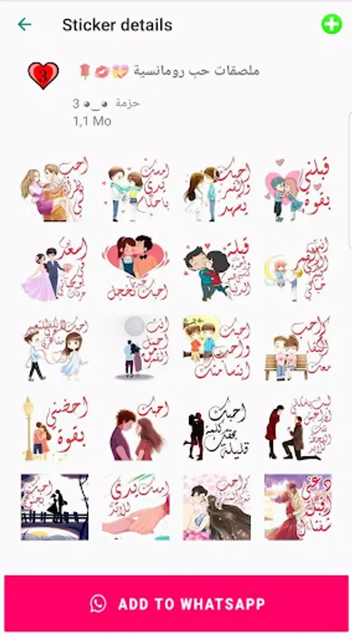 The app has a large collection of romantic love sticker packs, express yourself with new cute stickers for whatsapp 💘